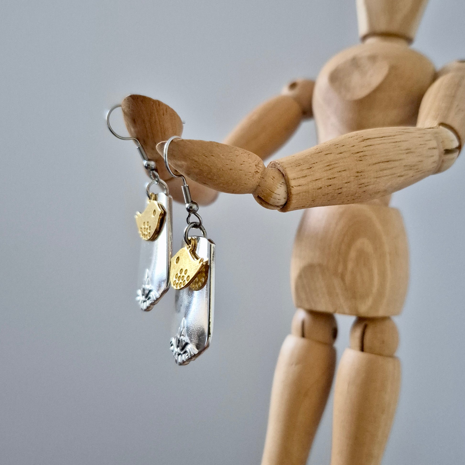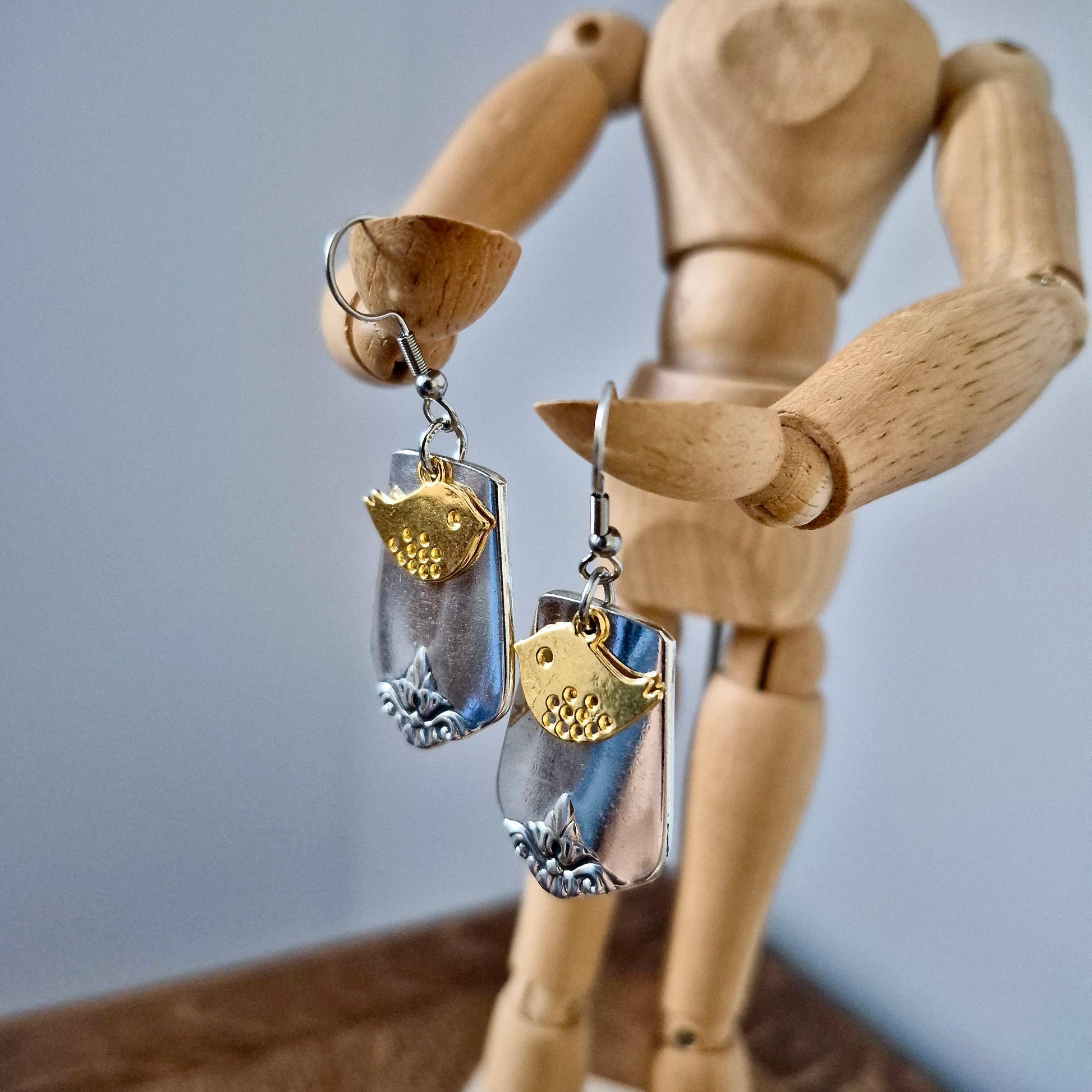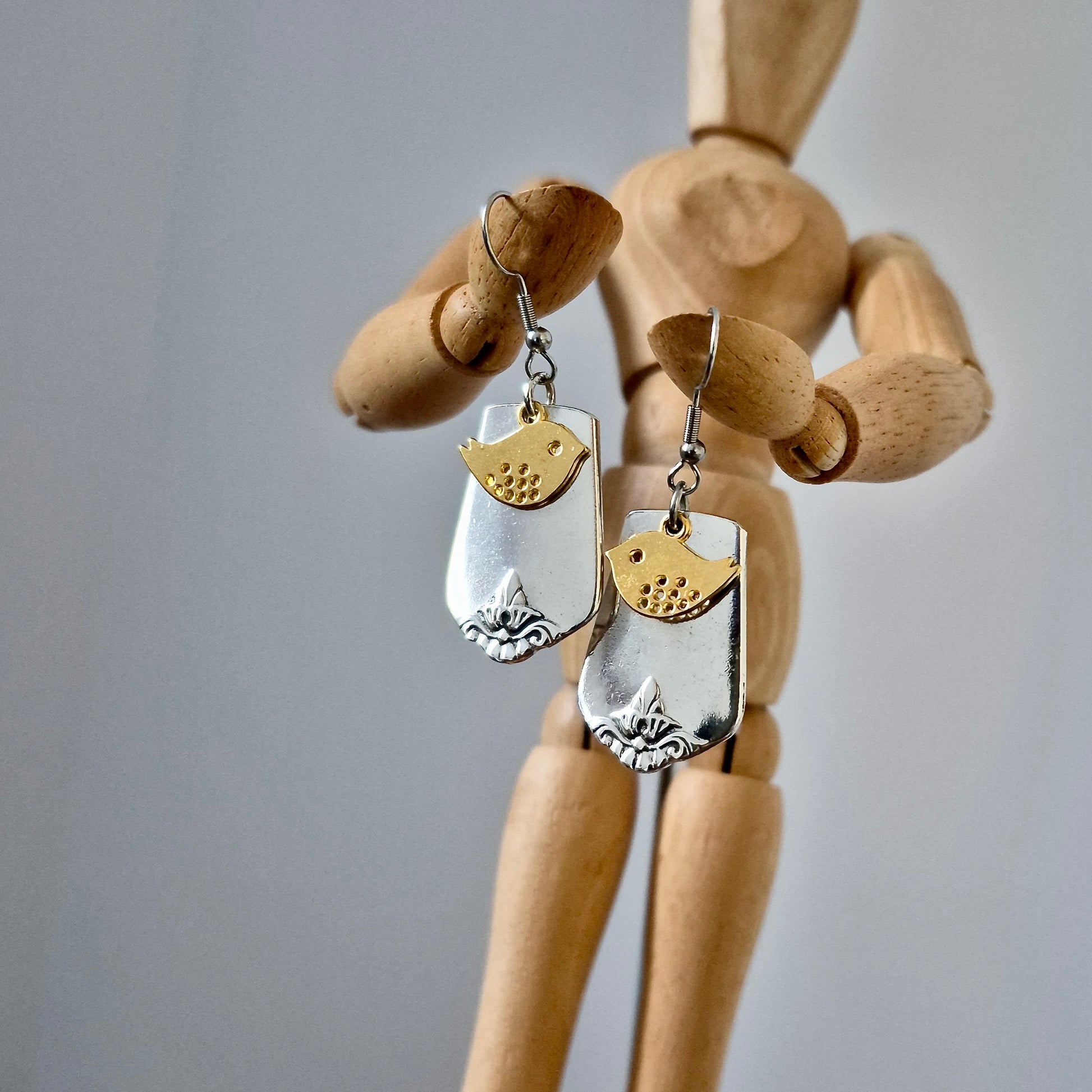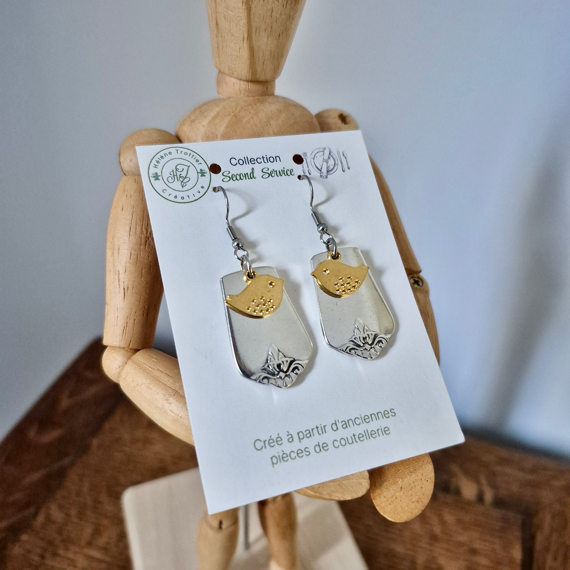 Boucles d'oreilles avec un oiseau de teinte dorée.