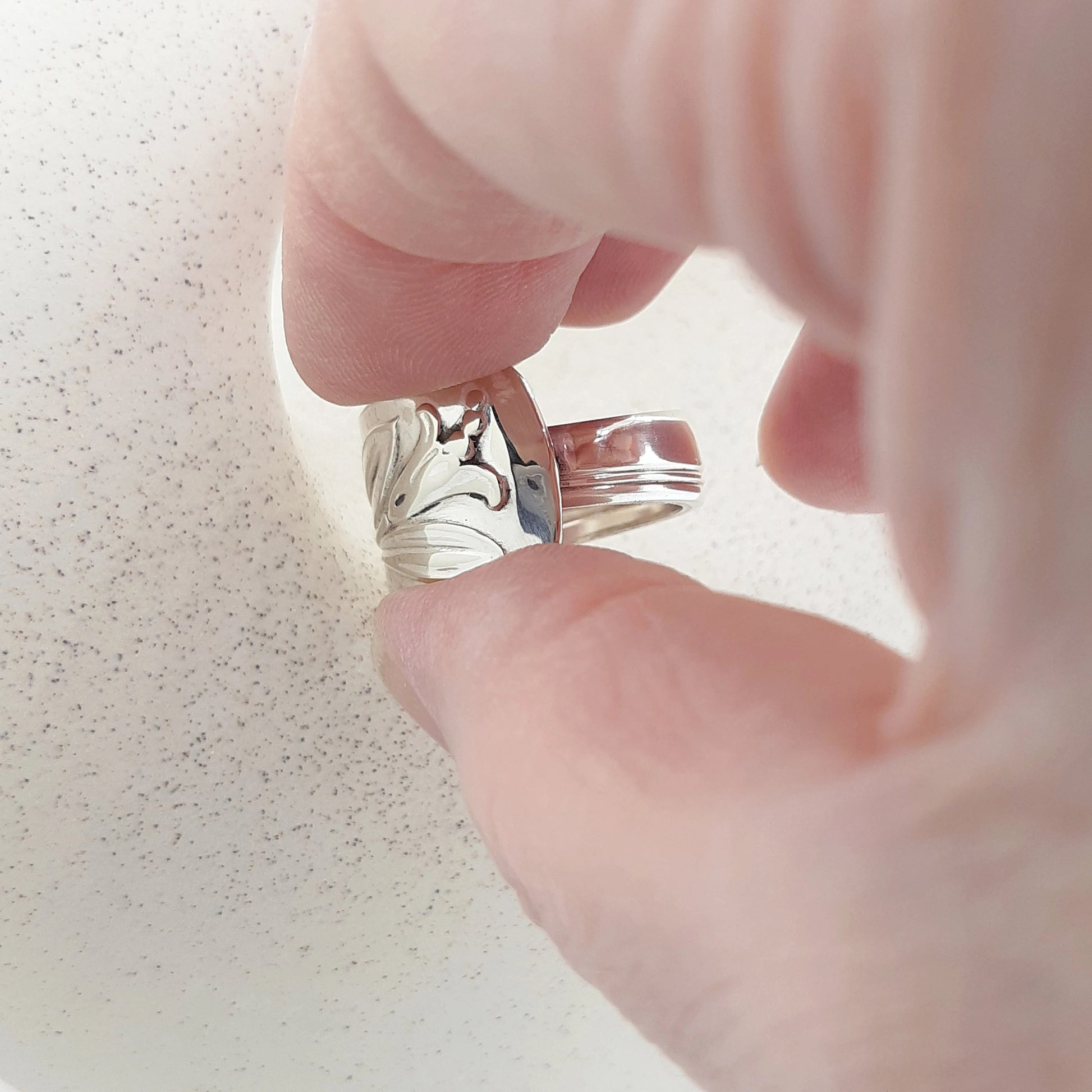 Je travaille le bout de la bague pour qu'elle épouse à la perfection le contour de la bague et qu'elle ne gène pas celle ou celui qui l'a porte.