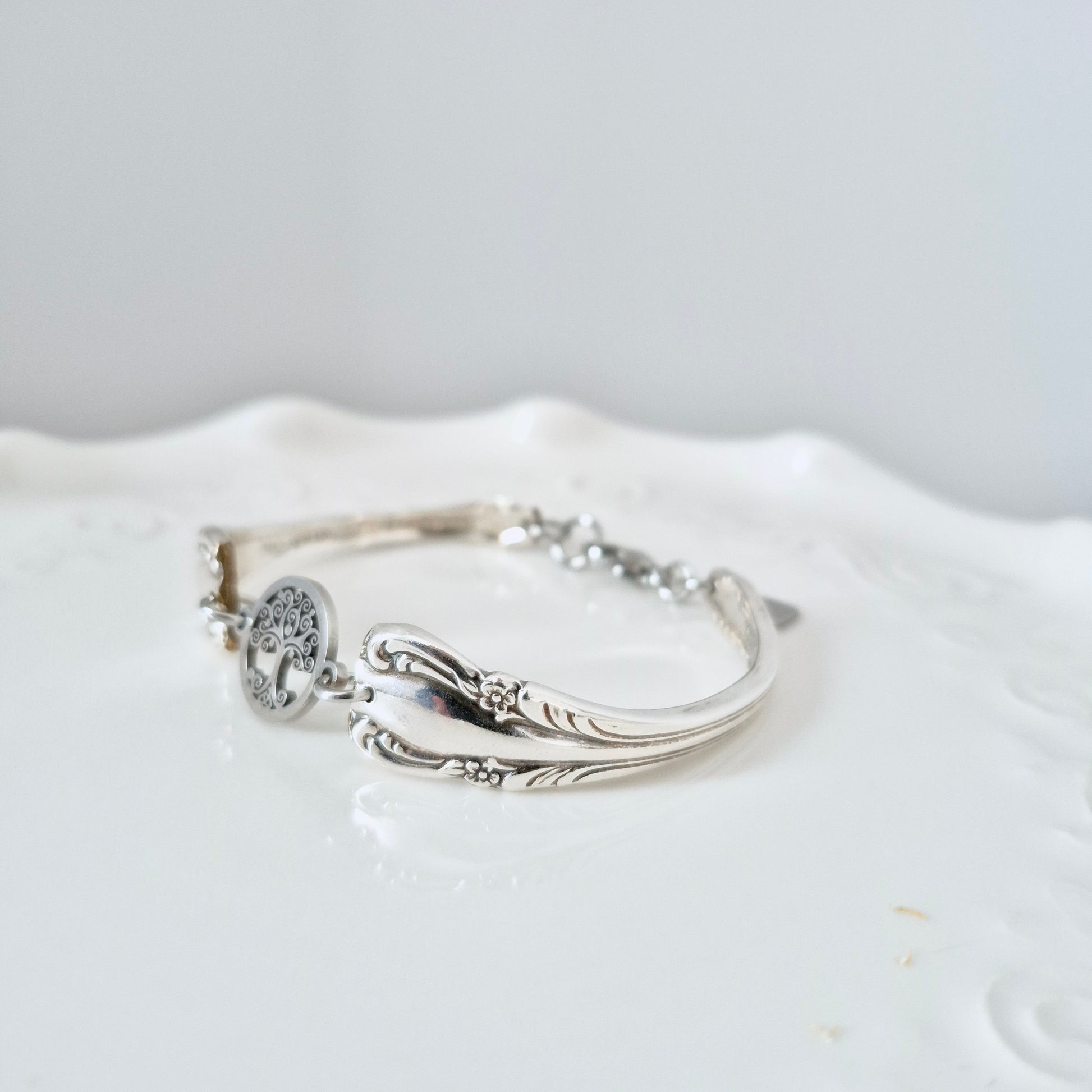 Magnifique bracelet créé avec 2 manches d'ustensiles vintage.