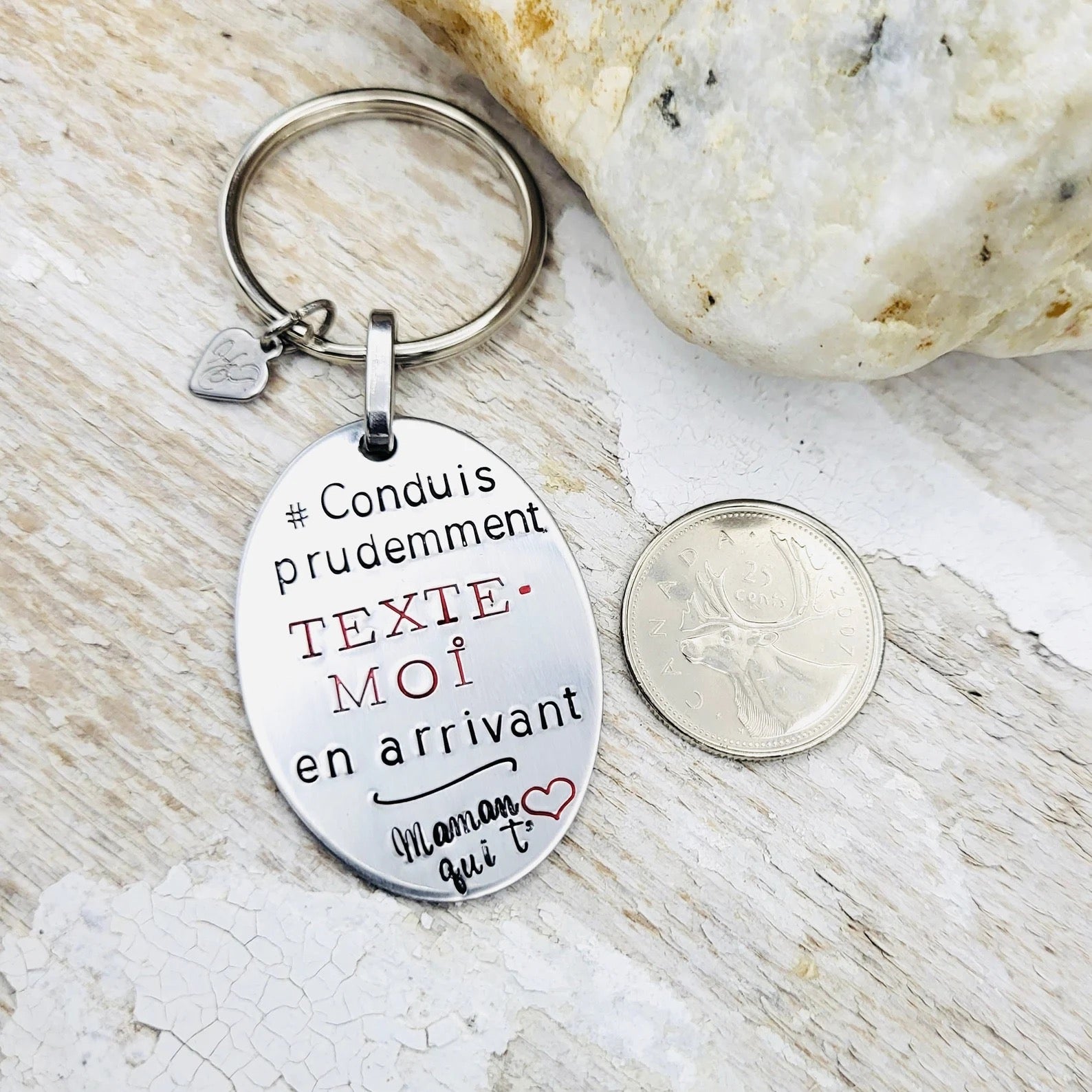 Chaque porte-clefs est estampillé à la main individuellement.